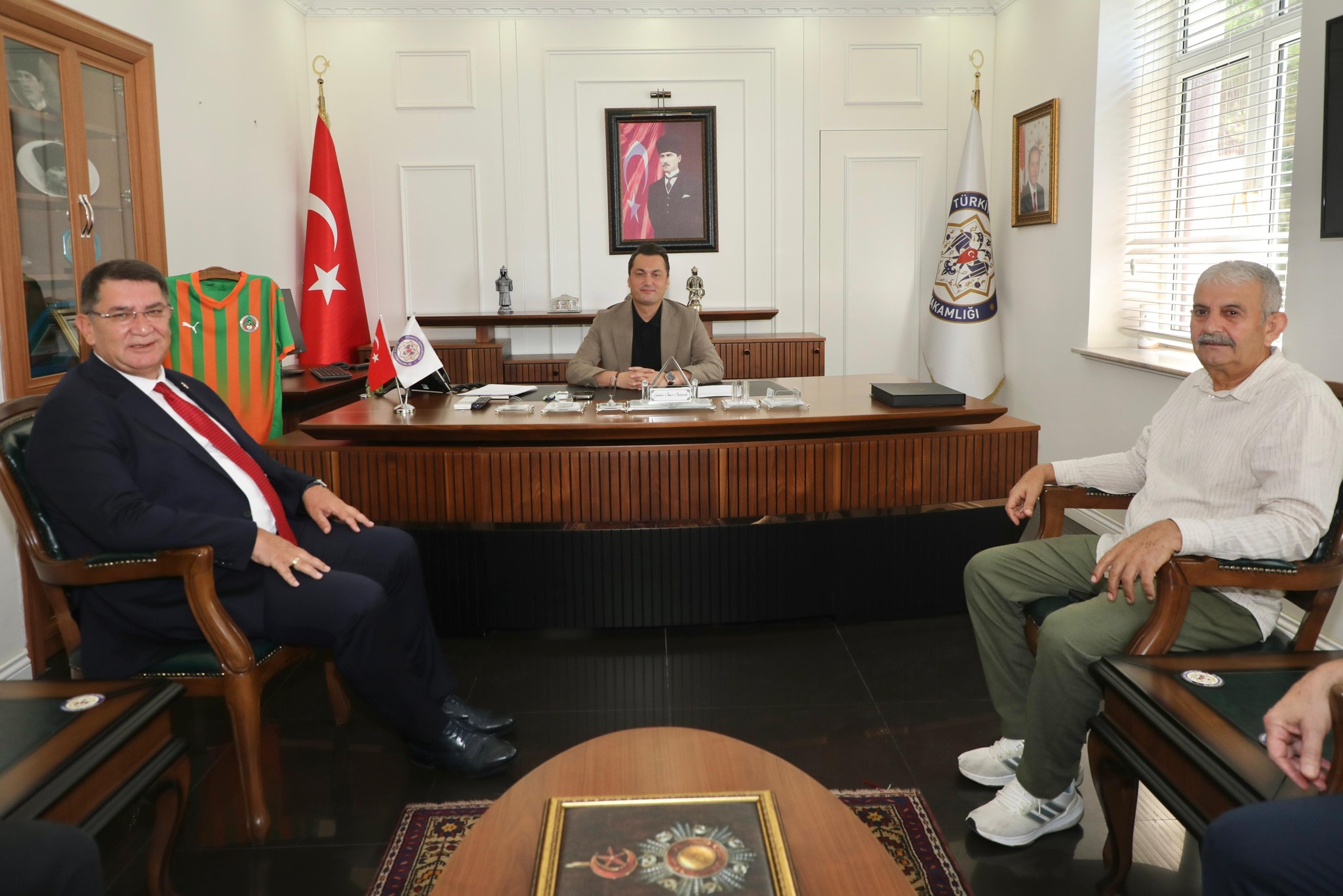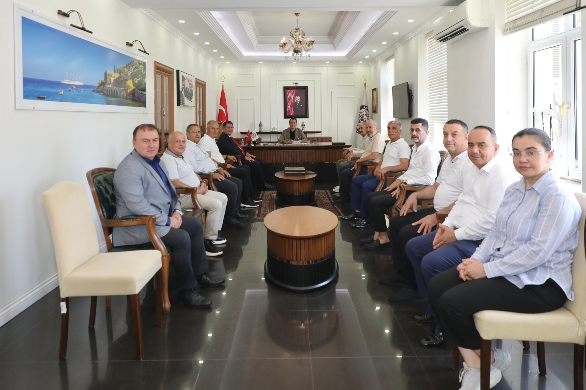 Antalya Esnaf ve Sanatkarlar Odaları Birliği (AESOB) Başkanı Adlıhan Dere, Yönetim Kurulu Üyeleri ve Alanya’daki oda başkanları, Kaymakam Şakir Öner Öztürk’ü ziyaret etti.