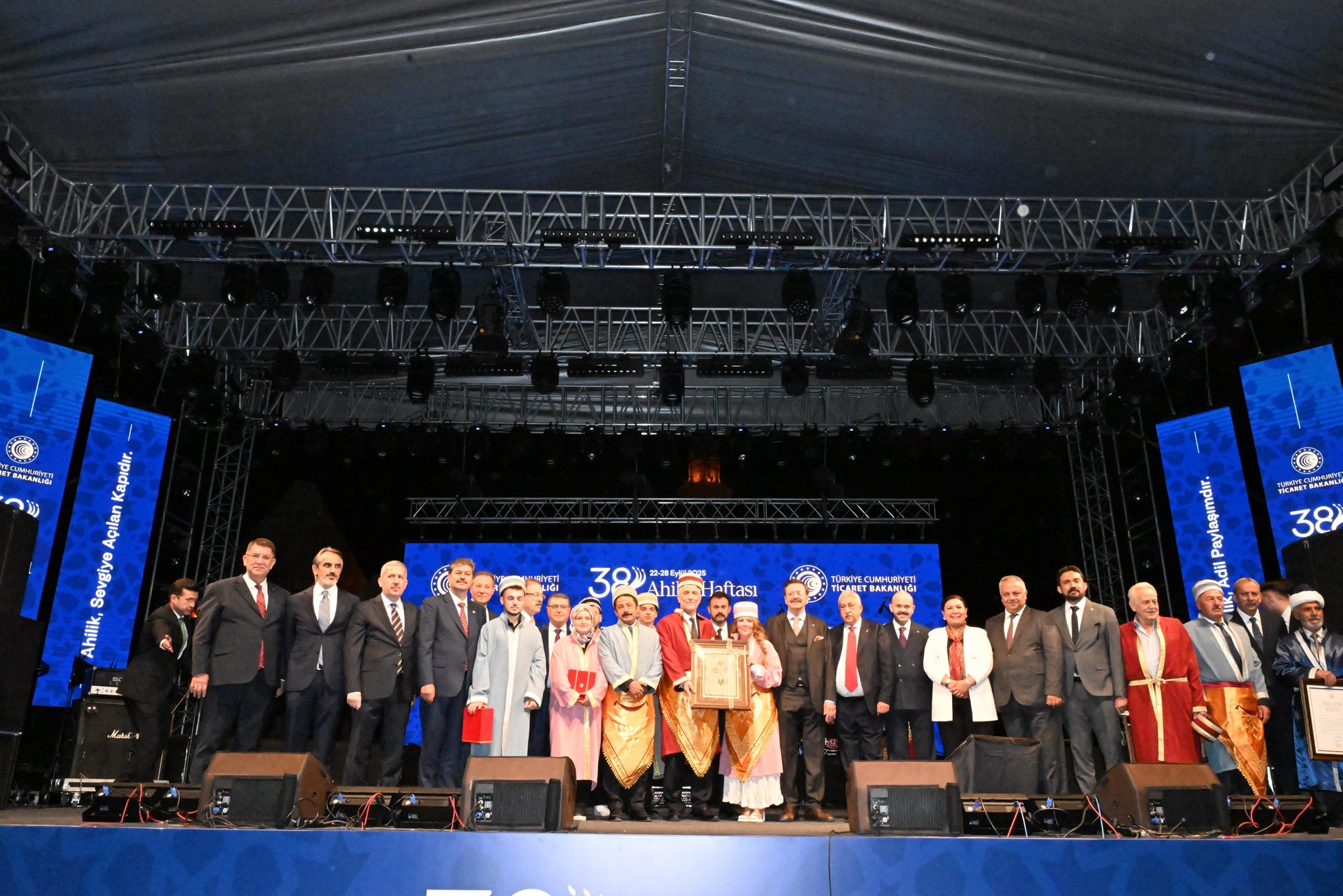 Ahilik kültürünü yaşatmak ve yaymak amacıyla gerçekleştirilen 38. Ahilik Haftası Kutlama Etkinlikleri, Kırşehir’de büyük bir coşkuyla kutlandı. Bu kapsamda, ilimiz Ahisi Üsame Çolak, Ticaret Bakanımız Sayın Prof. Dr. Ömer Bolat’ın elinden ödülünü aldı.