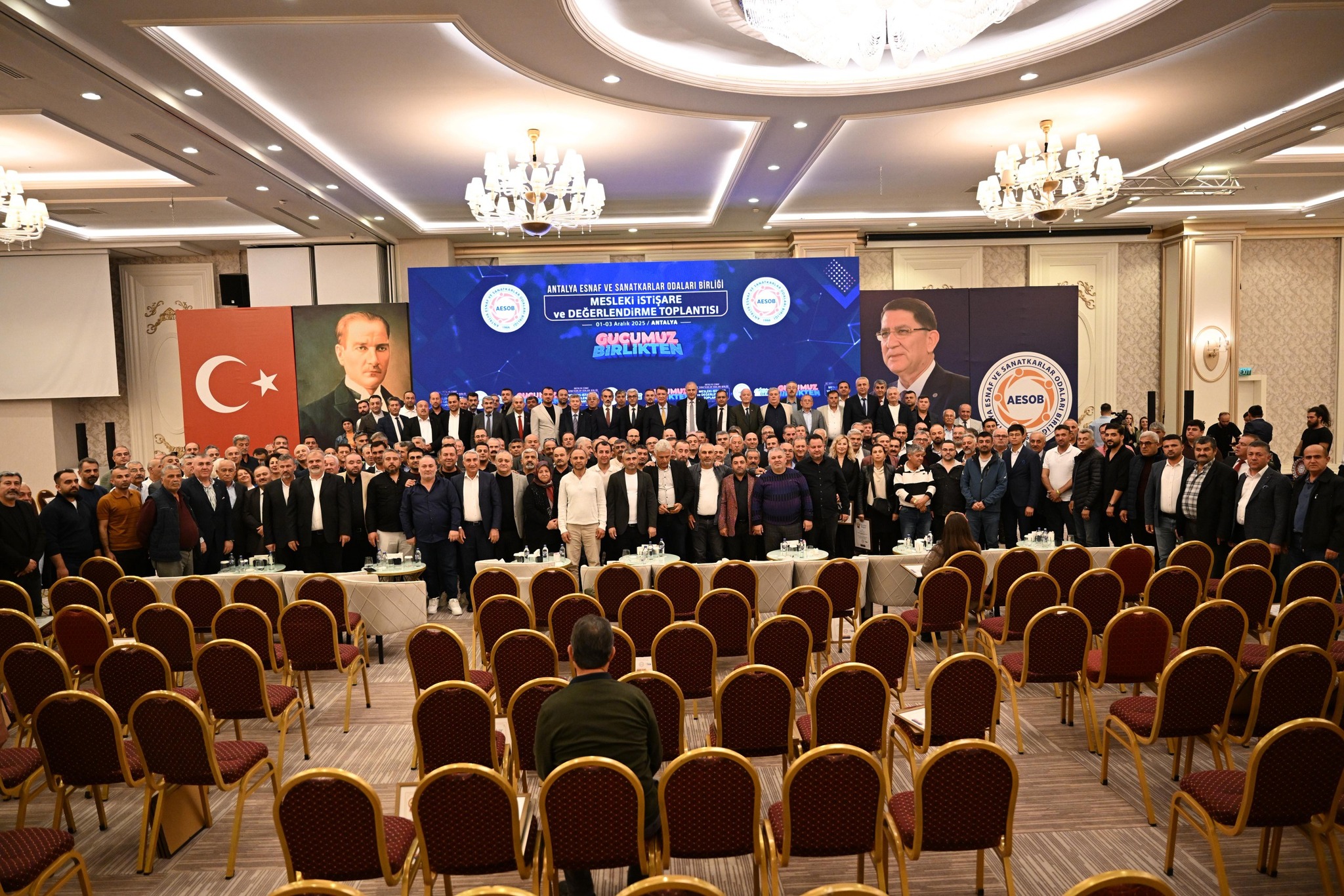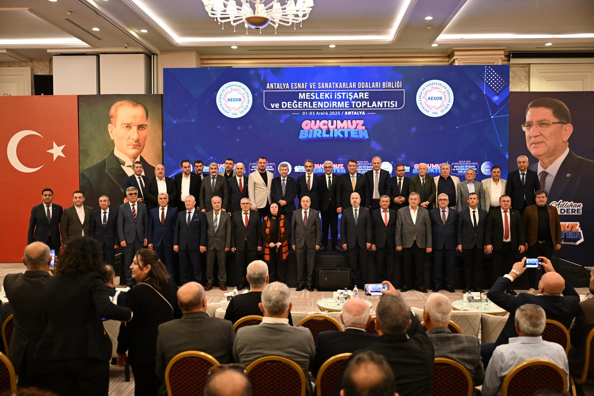 Ticaret Bakanlığı Esnaf, Sanatkârlar ve Kooperatifçilik Genel Müdürü Sayın Taha Enes Şener, Ticaret İl Müdürü Sayın Halil Özşahan ve TESK Genel Sekreter Vekili Atakan Çelik, Antalya Esnaf ve Sanatkarlar Odaları Birliği tarafından düzenlenen “Mesleki İstişare ve Değerlendirme Toplantısı Ahde Vefa Ödül Töreni”ne katıldılar. Törende, Birliğimize bağlı ilçe oda başkanları ve yönetim ile denetim kurulu üyeleri de yer aldı.