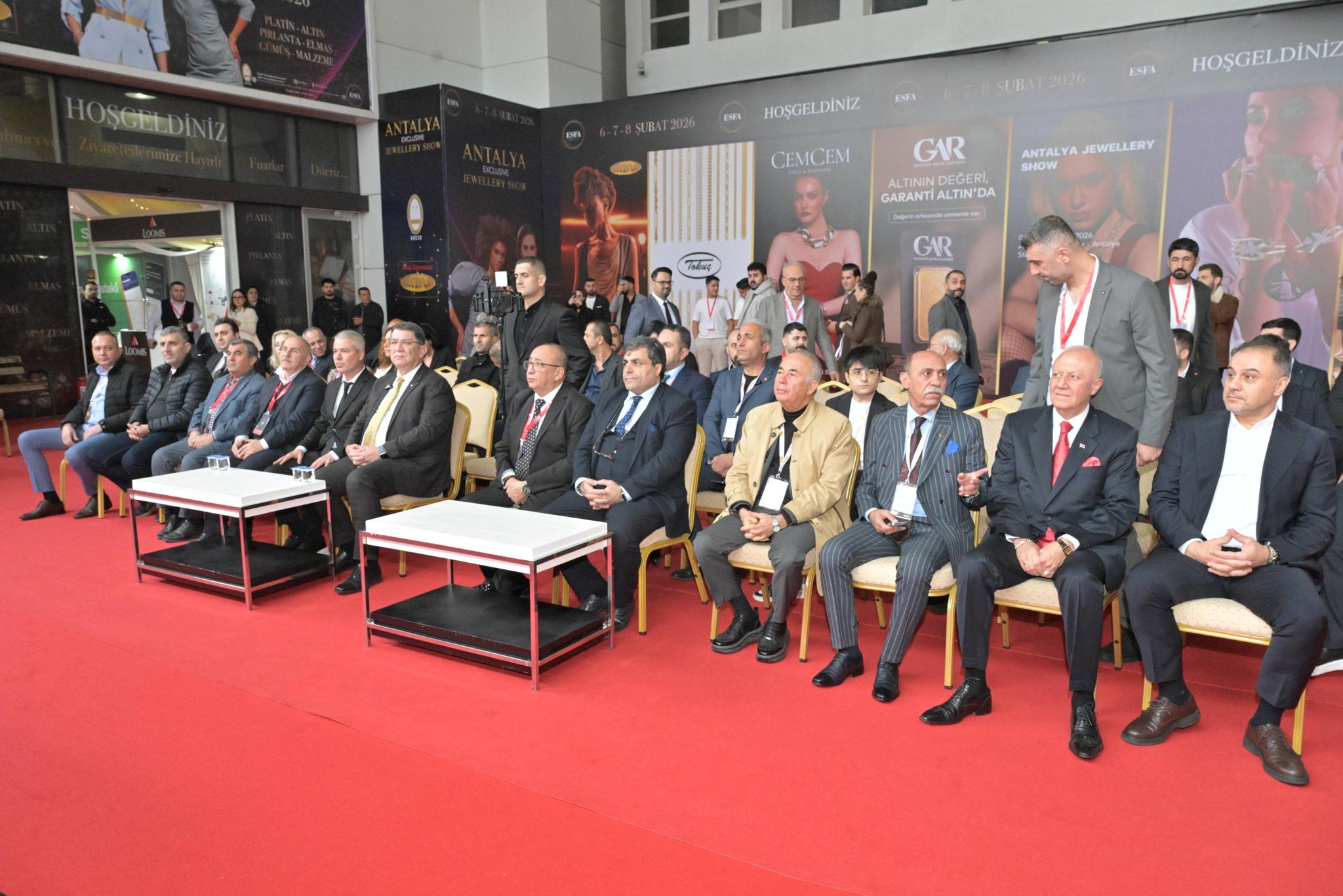 6-7-8 Şubat 2026 tarihleri arasında Antalya’da düzenlenen 3. Antalya Exclusive Jewellery Show Kuyumculuk Fuarı, ESFA Fuarcılık ve Antalya Kuyumcular Esnaf ve Sanatkarlar Odamızın işbirliği ile Anfaş Fuar Merkezi’nde gerçekleştirildi. Fuara, Antalya Kuyumcular Odası Başkanı Halil Kayaer, Antalya Marangozlar Esnaf Odası Başkanı Kemal Evyapan, Antalya Mermerciler, Karocular ve Alçıcılar Esnaf Odası Başkanı Mehmet Çetin, Antalya Sütçüler, Yoğurtçular ve Dondurmacılar Esnaf Odası Başkanı Bahattin Ekin, ESFA Fuarcılık Yönetim Kurulu Başkanı Faruk Aşık ve ülkemizin dört bir yanından gelen kuyumcular odası başkanları ve sektör temsilcileri katıldı.