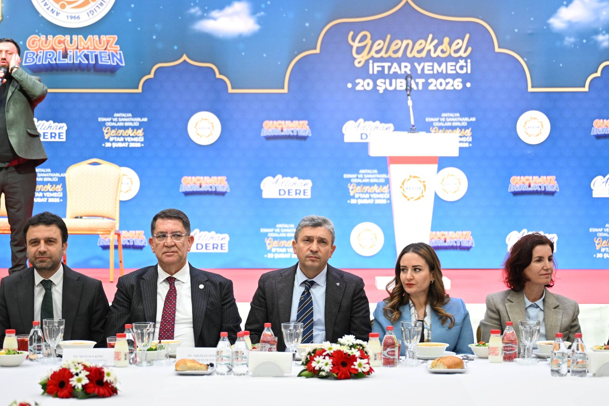 Antalya Esnaf ve Sanatkarlar Odaları Birliği, her yıl geleneksel olarak düzenlediği iftar programını bu yıl da büyük bir katılımla gerçekleştirdi. Programda Antalya Valisi Hulusi Şahin, AK Parti Antalya Milletvekili Mustafa Köse, CHP Antalya Milletvekilleri Cavit Arı, Aliye Coşar, Sururi Çorabatır ve Mustafa Erdem gibi önemli isimler yer aldı.