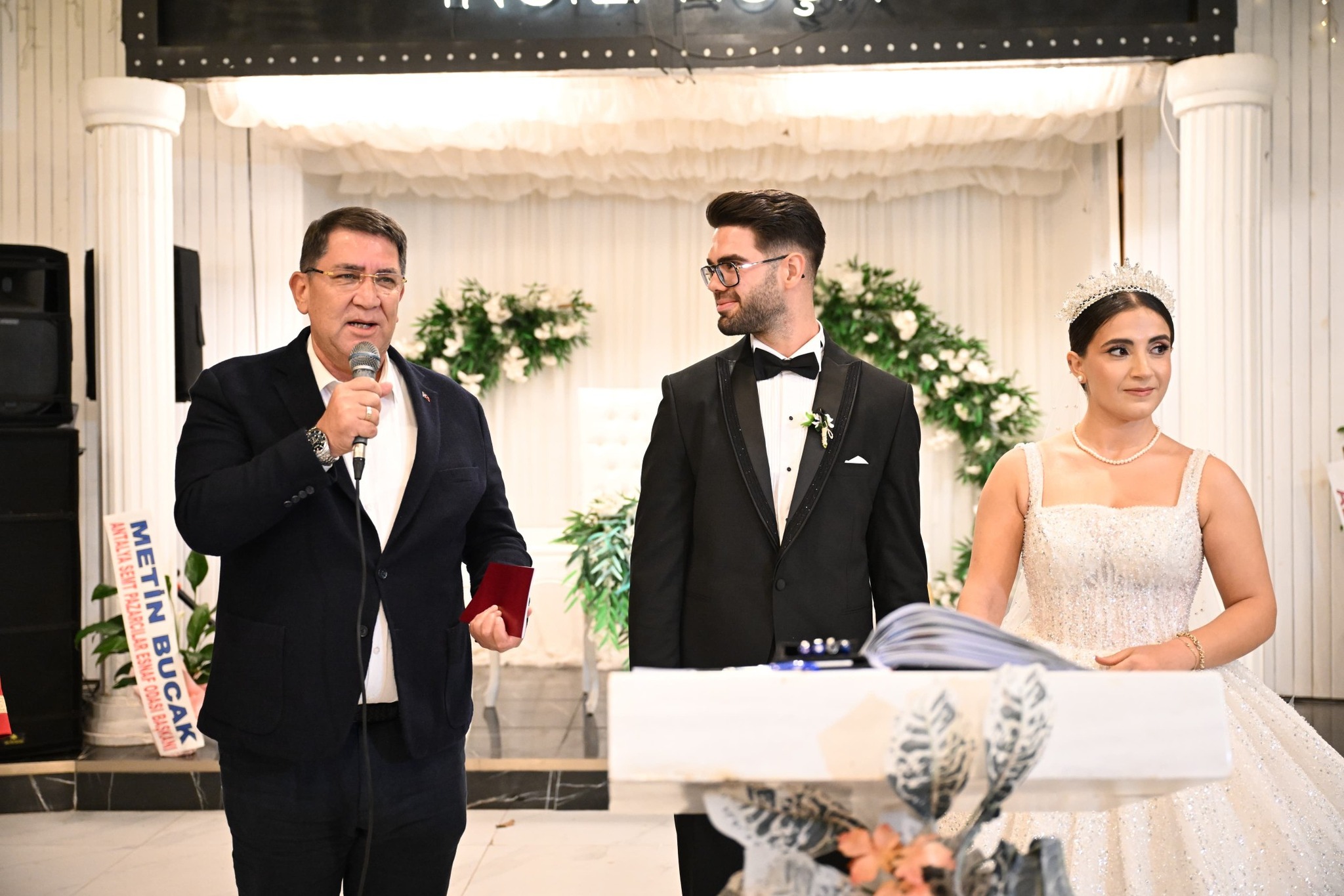 Antalya Seyyar ve Sabit Sebze ve Meyveciler Esnaf Odası Başkan Vekili Haydar Parlak’ın oğlu Cengizhan ve kardeşi Edibe için düzenlenen düğün merasimine katılım gösterdik. Bu özel günde, Antalya Büyükşehir Belediyesi ve Kepez Belediyesi Meclis Üyesi Adnan Kabaağaç, Birlik Disiplin Kurulu Üyesi ve Antalya Sabit ve Seyyar Sebzeciler ve Meyveciler Esnaf Odası Başkanı Bülent Kaplan ile Antalya Semt Pazarcılar Odası Başkanı Metin Bucak da yer aldı. Nikah törenlerinde şahitlik etmenin mutluluğunu yaşadık.
