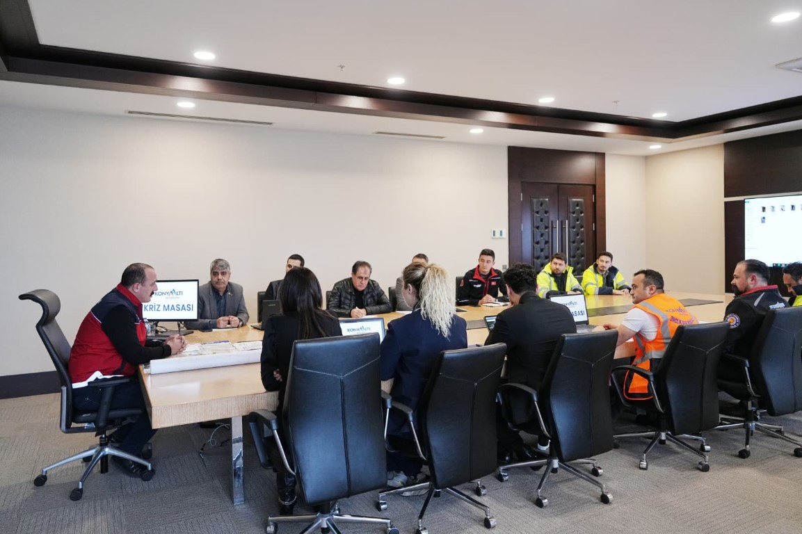 Antalya’nın genelinde olduğu gibi Konyaaltı’nda da etkili olan yoğun yağış ve fırtına sebebiyle Konyaaltı Belediyesi Kriz Masası toplantısı gerçekleştirildi. Başkan Cem Kotan başkanlığındaki toplantıya, Konyaaltı Belediyesi Başkan Yardımcıları ve Birim Müdürleri katıldı. Başkan Kotan, olağanüstü hava koşullarının başladığı andan itibaren sahada çalışan tüm personele teşekkürlerini sundu.
