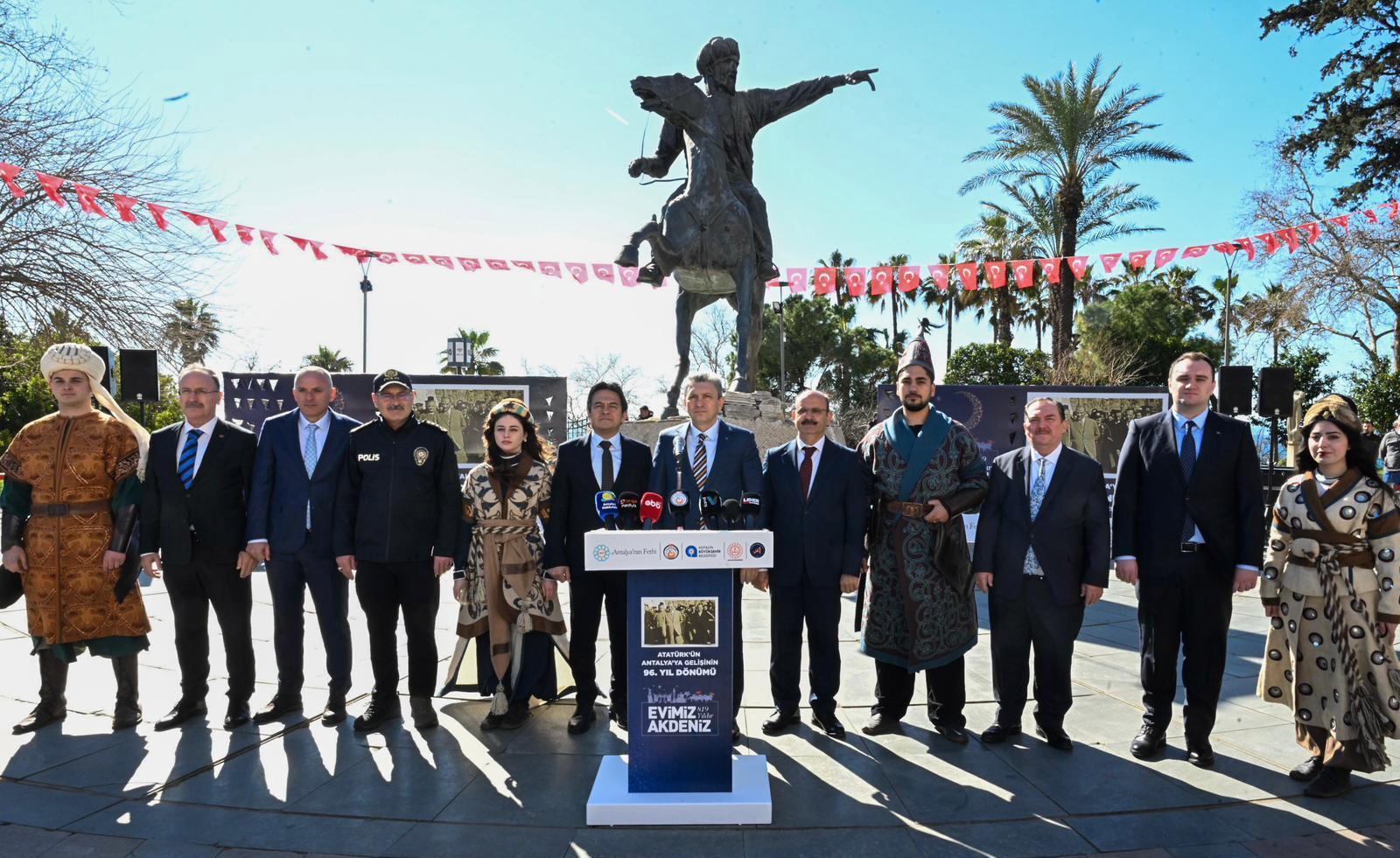 Antalya Valisi Hulusi Şahin’in başkanlığında gerçekleştirilen basın toplantısı, Yavuz Özcan Parkı’ndaki 1. Gıyaseddin Keyhüsrev heykeli önünde yapıldı. Toplantıya, Vali Şahin’in yanı sıra Antalya Büyükşehir Belediyesi Genel Sekreter Yardımcısı Cemil Böcek, Muratpaşa Kaymakamı İhsan Kara, Akdeniz Üniversitesi Rektör Yardımcısı Şükrü Özen, ilgili kurum müdürleri ve basın mensupları katılım sağladı.