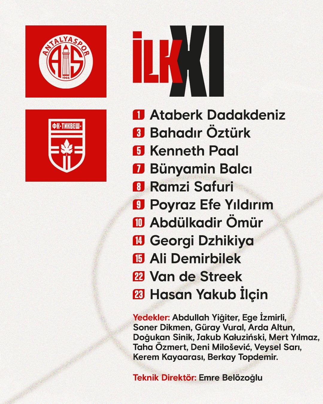 İlk 11’de yer alan oyuncular: Ataberk Dadakdeniz, Bahadır Öztürk, Kenneth Paal, Bünyamin Balcı, Ramzi Safuri, Poyraz Efe Yıldırım, Abdülkadir Ömür, Georgi Dzhikiya, Ali Demirbilek, Van de Streek ve Hasan Yakub İlçin.