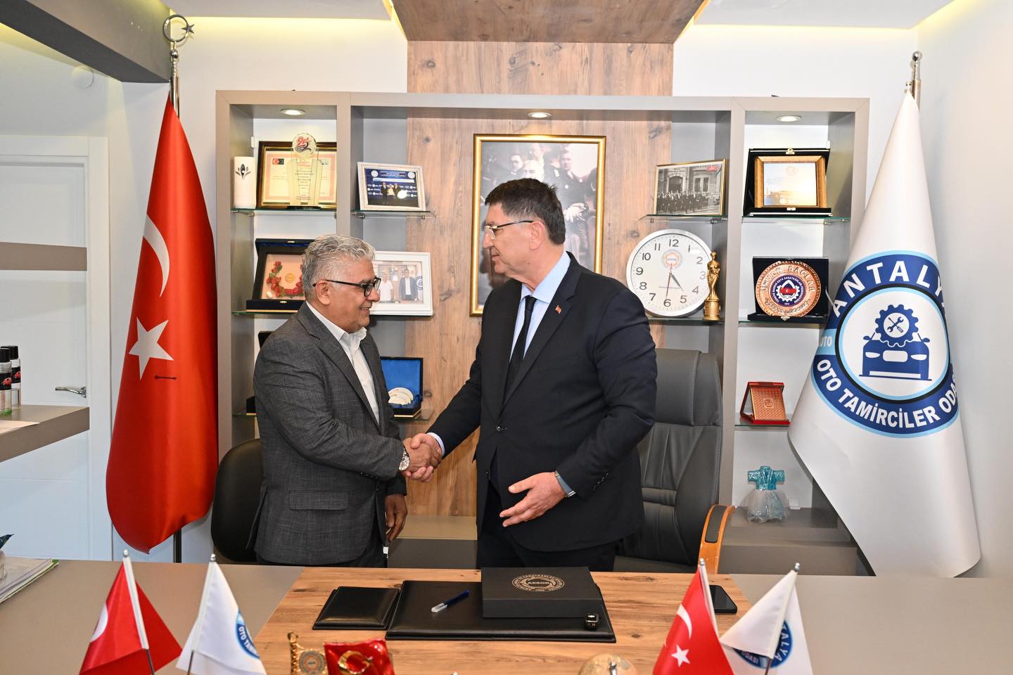 15 Ocak 2026 tarihinde düzenlenen Antalya Oto Tamirciler Esnaf ve Sanatkarlar Odamızın Seçimli Olağan Genel Kurulu’nda, oda üyelerimizin desteğiyle yeniden göreve seçilen Başkanımız Ünver Dağlar ve Yönetim ile Denetim Kurulu Üyelerimize hayırlı olsun ziyaretinde bulunduk.