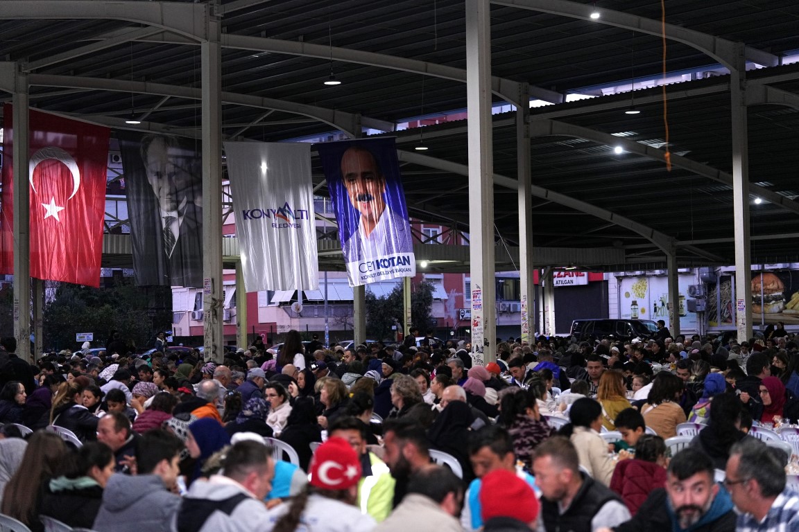 Konyaaltı Belediye Başkanı Cem Kotan, Liman Mahallesi Kapalı Pazar Yeri’nde düzenlenen iftar yemeğinde vatandaşlarla bir araya geldi. Başkan Kotan, “Bu akşam yaklaşık 2 bin 500 kişi ile birlikte aynı sofradayız. Şimdiden Ramazan Bayramı’nızı kutluyorum. Ülkemiz için her zaman güzel günler dilerim. Atatürk ve Cumhuriyetle kalmayı, her zaman sizlerle aynı sofrada olmayı arzuluyorum” ifadelerini kullandı.
