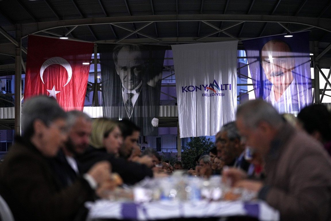 Konyaaltı Belediye Başkanı Cem Kotan, Ramazan ayı vesilesiyle düzenlenen iftar programında vatandaşlarla bir araya geldi. Liman Mahallesi Kapalı Pazar Yeri’nde gerçekleştirilen etkinlikte, Kotan’ın yanı sıra Cumhuriyet Halk Partisi (CHP) Antalya İl Başkanı Nail Kamacı, CHP Konyaaltı İlçe Başkanı Demet Gündüz, CHP Antalya İl ve Konyaaltı İlçe Başkan Yardımcıları, CHP Konyaaltı İlçe Gençlik Kolları Başkanı İsmail Koçak, CHP Konyaaltı İlçe Kadın Kolları Başkanı Aslı Tazegül, Akdeniz Belediyeler Birliği Genel Sekreteri Süreyya İşeri, Konyaaltı Belediyesi Meclis Üyeleri, Antalya Ticaret ve Sanayi Odası Başkan Vekili Boğaçhan Göksu, sivil toplum örgütlerinin temsilcileri, muhtarlar ve kalabalık bir vatandaş grubu yer aldı.