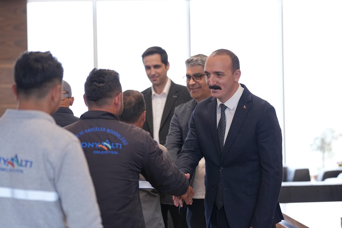 Konyaaltı Belediye Başkanı Cem Kotan, Ramazan Bayramı öncesinde belediye personeli ile bir araya gelerek bayramlarını kutladı. Kotan, “Konyaaltı Belediyesi olarak biz büyük bir aileyiz. Vatandaşlarımıza en iyi hizmeti sunabilmek için çalışıyoruz. Tüm çalışma arkadaşlarıma ve ailelerine sağlıklı, huzurlu ve mutlu bir bayram diliyorum” şeklinde konuştu.