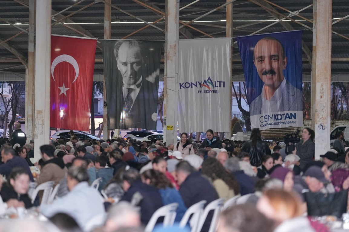 Ramazan ayının birlik ve beraberlik duygularının güçlendiği bir zaman dilimi olduğunu vurgulayan Konyaaltı Belediye Başkanı Cem Kotan, “Bu ayda aynı sofrada bir araya geliyoruz. Aynı ekmeği bölüşüyoruz. Huzurun ve mutluluğun duasını ediyoruz. Tutulan oruçlar ve edilen dualar kabul olsun” dedi. Vatandaşların huzuru için çalıştıklarını ifade eden Kotan, “Biz Konyaaltı ve Antalya sevdalısıyız. Takdir ettiniz ve bizleri seçtiniz. Bizler Mustafa Kemal Atatürk’ün yolundan gitmeye devam edeceğiz. Cumhuriyet sevdalısı olmaya devam edeceğiz. Çünkü Konyaaltı Cumhuriyetin göz bebeği. Cumhuriyetin sesi Konyaaltı’ndan yükseliyor. Mustafa Kemal Atatürk’ün düşünceleri Konyaaltı’ndan yükseliyor. Bu yüzden Konyaaltı’na hizmet etmek bizim için onur ve şereftir” şeklinde konuştu.
