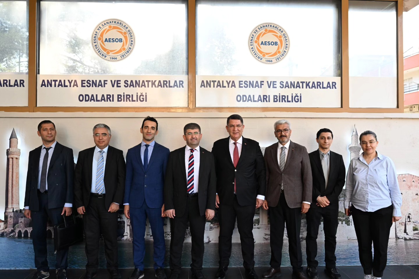 İç Ticaret Genel Müdür Yardımcısı Şakir Engin Yüksel, İç Ticaret Genel Müdürlüğü Sebze Meyve Ticareti Daire Başkanı Mahmut Erkan, Antalya Ticaret İl Müdürü Halil Özşahan, Ticaret Uzmanı Mustafa Yavuz, Ticaret Uzmanı Yunus Karayel ve Memur Ahmet Dalğın, Antalya Esnaf ve Sanatkarlar Odaları Birliği’ni ziyaret etti.