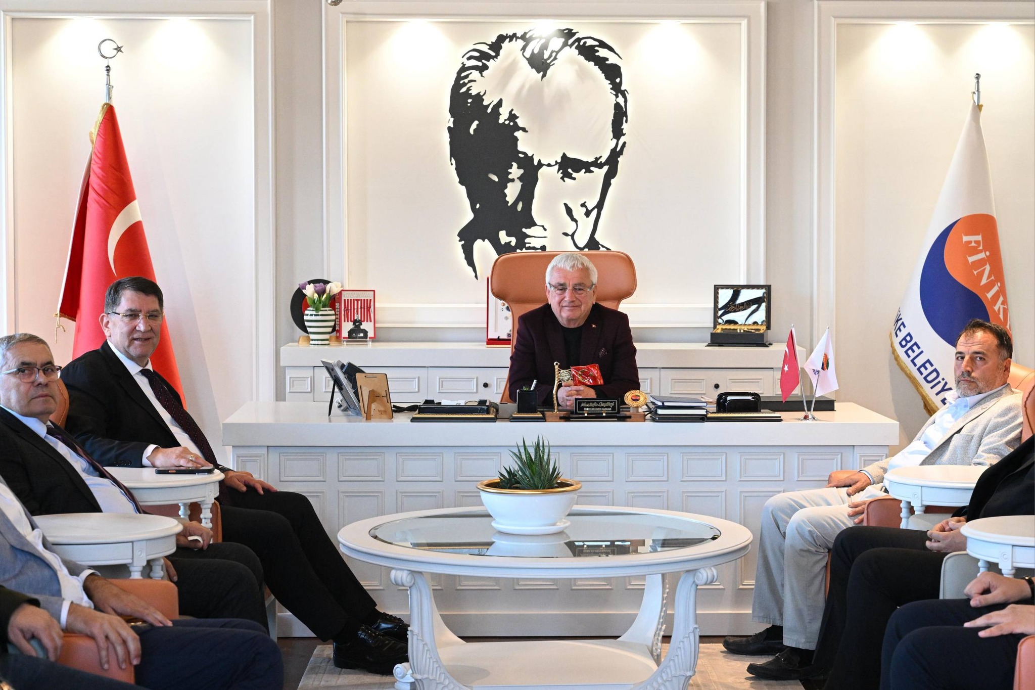 Finike Belediye Başkanı Mustafa Geyikçi, çeşitli esnaf odalarının temsilcileri tarafından makamında ziyaret edildi. Ziyarete, Birlik Başkan Vekili ve Antalya Madeni Eşya Sanatkarları Esnaf Odası Başkanı Mehmet Ali Gülaçtı, Birlik Yönetim Kurulu Üyesi Kaş Esnaf ve Sanatkarlar Odası Başkanı Ali Çalışkan, Birlik Denetim Kurulu Üyesi Demre Esnaf Sanatkarlar Şoförler ve Nakliyeciler Odası Başkanı Mahmut Kemal Perçin, Birlik Disiplin Kurulu Üyesi Antalya Seyyar ve Sabit Sebze ve Meyveciler Esnaf Odası Başkanı Bülent Kaplan, Antalya Şans Oyunları ve Milli Piyango Bayileri Esnaf Odası Başkanı Sercan Çobanoğlu, Antalya Fotoğrafçılar Kırtasiyeciler ve Kitapçılar Esnaf Odası Başkanı Mehmet Bayrak, Antalya Otelciler Pansiyoncular Camcılar Reklamcılar Matbaacılar Esnaf Odası Başkanı Özcan Sucu, Kemer Esnaf ve Sanatkarlar Odası Başkanı Okay Çelik, Finike Ulaştırma Hizmetleri Esnaf Odası Başkanı Ali Çoban ve Finike Esnaf ve Sanatkarlar Odası Başkanı Adem Durdemir katıldı.