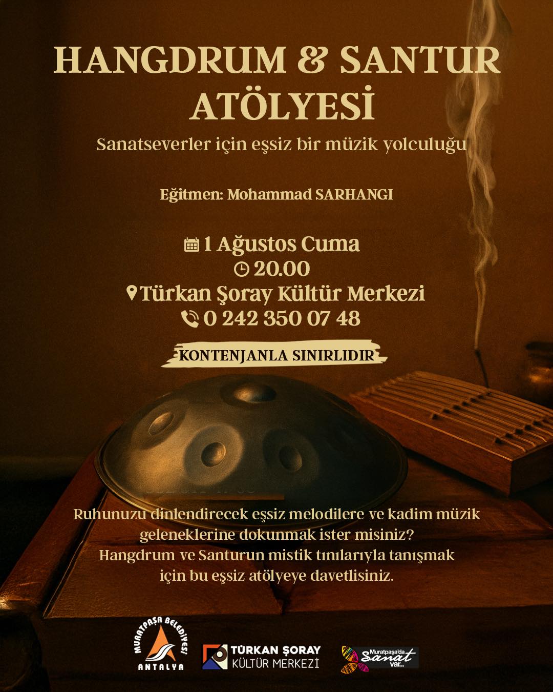 Muratpaşa Belediyesi, Mohammed Sarhangi eğitmenliğinde düzenleyeceği atölye ile müzikseverlere eşsiz bir deneyim sunacak. Bu atölye, katılımcılara unutulmaz bir müzik yolculuğu yaşatmayı hedefliyor.