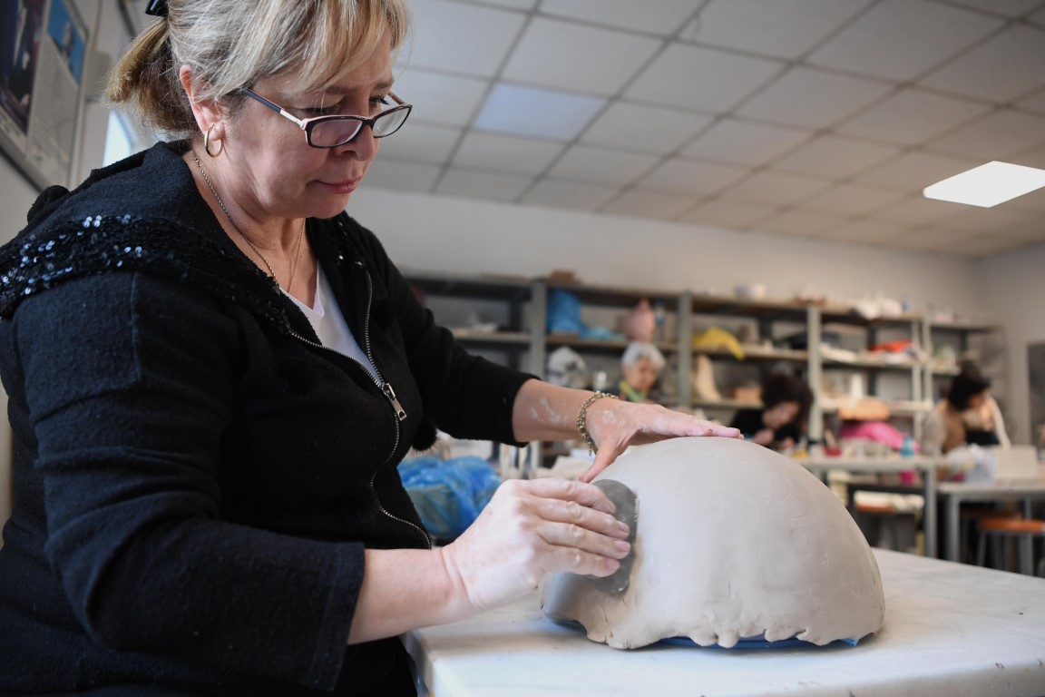 Seramik kursunda öğrencilere ilk olarak düşük dereceli çamur tanıttıklarını ve ardından ürünleri şekillendirdiklerini belirten Seramik Öğretmeni Sabiha Kök, “Burada seramik biçimlendirme dersi veriyoruz. Kursiyerlerimiz genellikle ‘yapamam’ korkusuyla başlıyorlar. Ancak onlara burada yetenek aramadığımızı, sürecin nasıl işleyeceğini anlatıyoruz. Ürünleri yapan kursiyerlerin başarılı olmaları karşısında yaşadıkları şaşkınlık bizi mutlu ediyor” dedi. Yıl sonu sergisine dair bilgi veren Kök, “Her ürünü sergiye götüremiyoruz. Sergiye katılacak ürünleri birlikte seçiyoruz. Kursiyerlerimiz, Başkanımız Cem Kotan’a ve bize bu kurslar için teşekkür ediyorlar” ifadelerini kullandı.