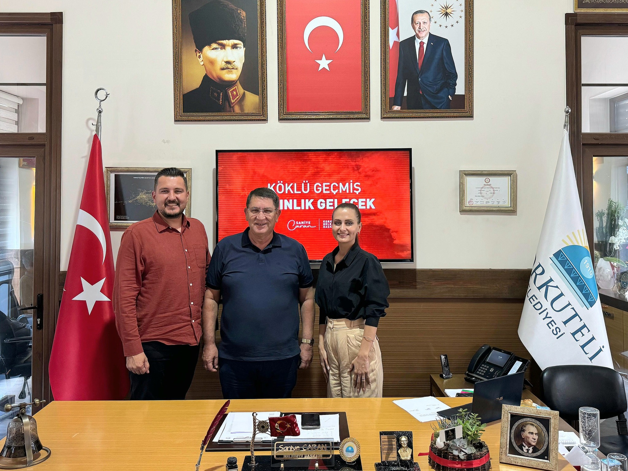 Antalya Esnaf ve Sanatkarlar Odaları Birliği Başkanı Adlıhan Dere, Korkuteli Belediye Başkanı Saniye Caran’ı, Korkuteli ESKKK Başkanı Hasan Can Caran ile birlikte makamında ziyaret etti.