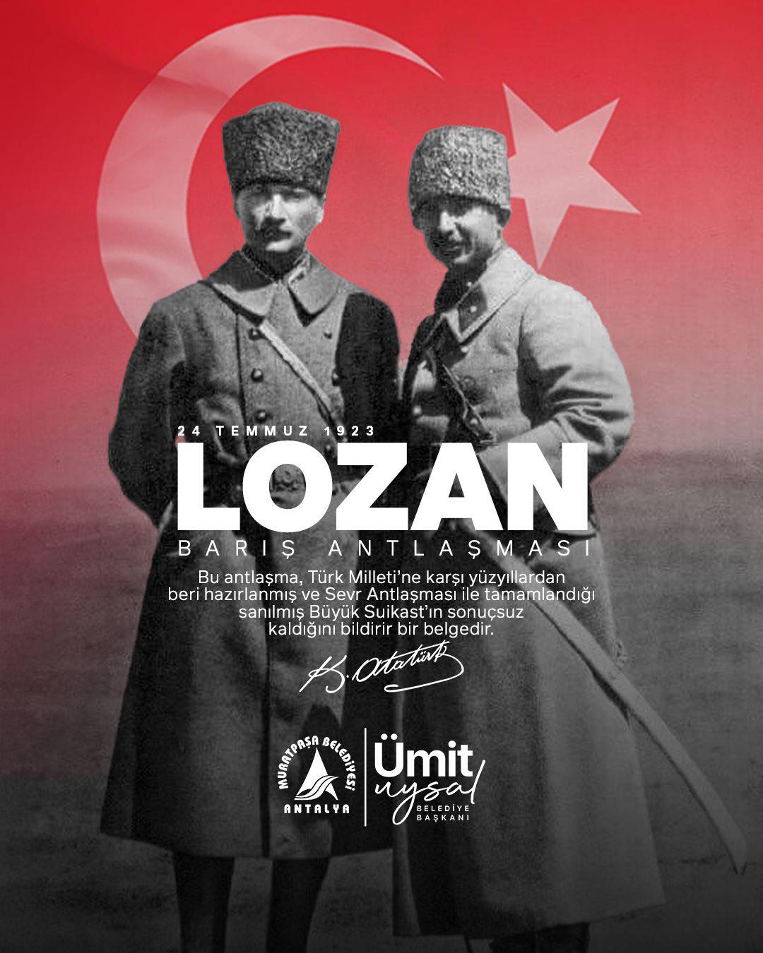 Türkiye Cumhuriyeti’nin kurucusu Gazi Mustafa Kemal Atatürk’ü, Lozan Kahramanı İsmet İnönü’yü, Kurtuluş Savaşı’nın aziz kahramanlarını ve tüm aydınlanma liderlerimizi saygı, şükran ve minnetle anıyoruz.