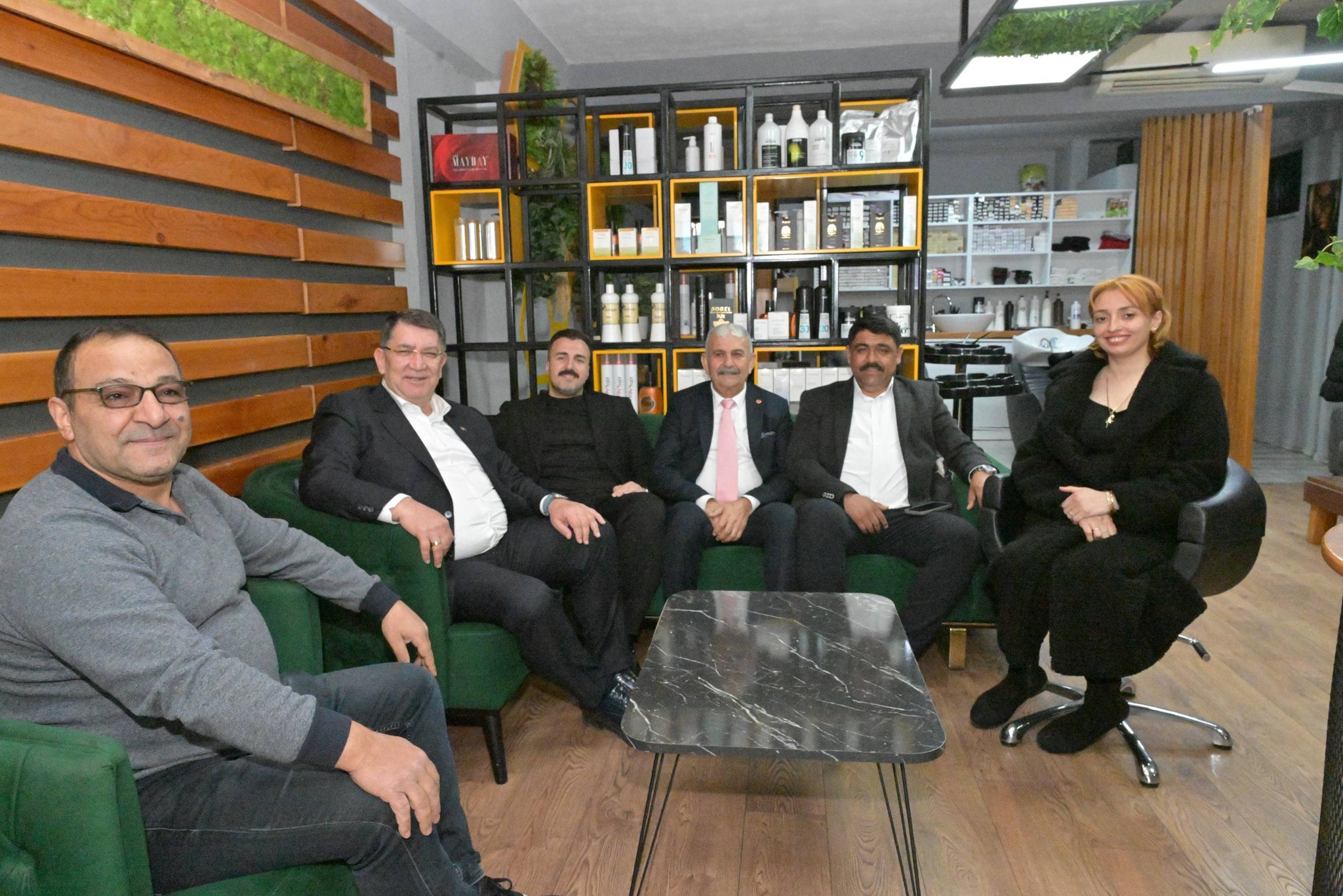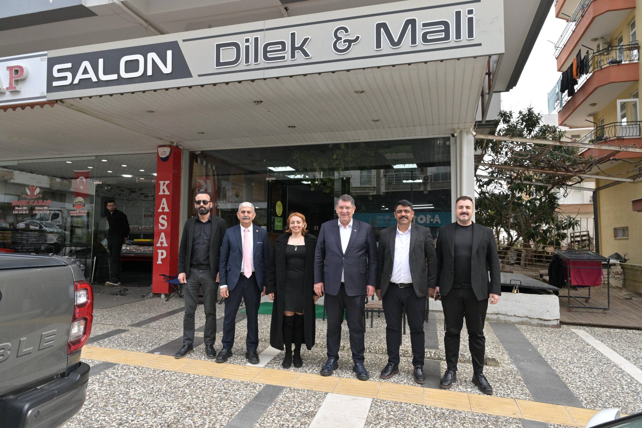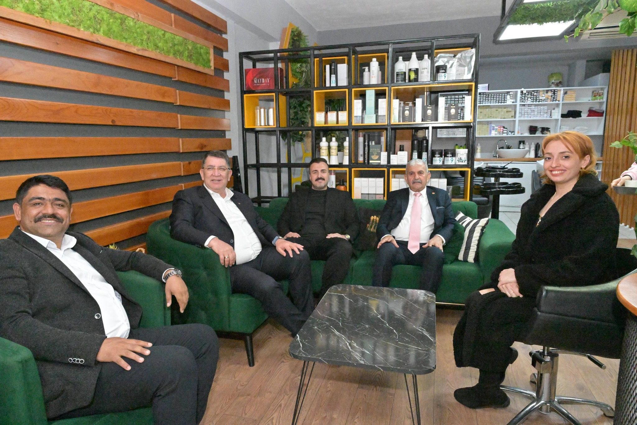 Manavgat Bakkallar Odası Başkanı Abdullah Akca, Manavgat Esnaf ve Sanatkarlar Odası Başkanı Abdullah Doru ve Başkan Vekili Aydın Bora, Manavgat Esnaf ve Sanatkarlar Odası Denetim Kurulu Başkanı Dilek Deniz’i ziyaret etti. Ziyaret, Dilek Deniz’in işyeri olan Salon Dilek & Mali Kuaför’de gerçekleştirildi. Ziyaret sırasında esnaf ve sanatkarlara hayırlı işler ve bol kazanç dilekleri iletildi.