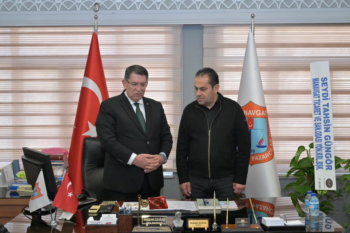 10 Ocak 2026’da yapılan Manavgat Sabit ve Seyyar Pazarcılar Esnaf Odamızın Seçimli Olağan Genel Kurulu sonrasında, oda üyelerimizin desteğiyle güven tazeleyerek yeniden göreve seçilen Başkanımız Mehmet Doğan ve Yönetim Denetim Kurulu Üyelerimize, Birlik Yönetim Kurulu Üyemiz ve Manavgat Bakkallar Odası Başkanı Abdullah Akca ile birlikte hayırlı olsun ziyaretinde bulunduk.