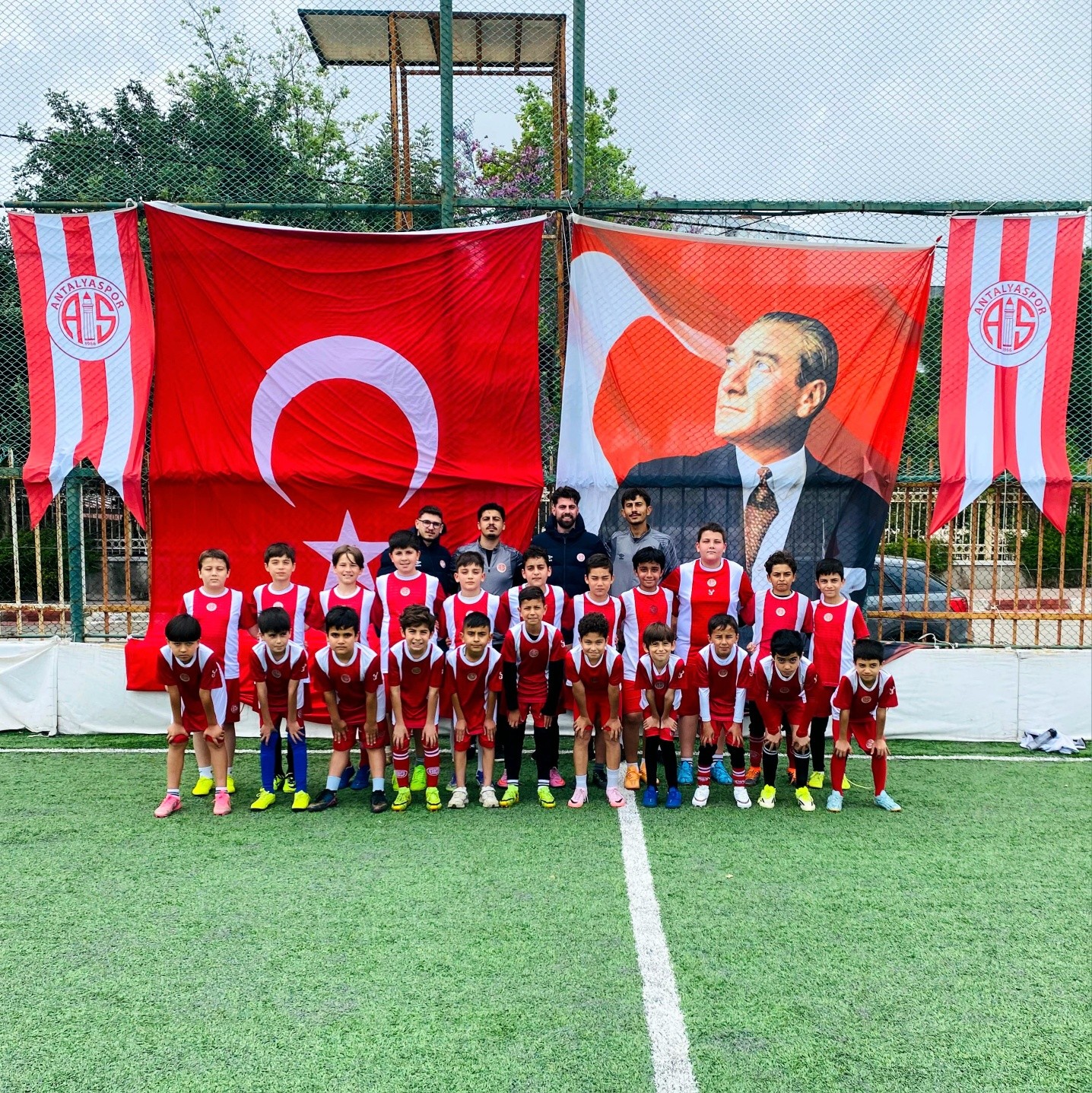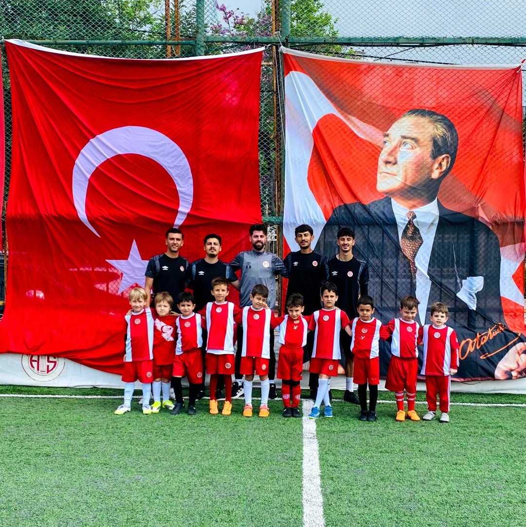 🇹🇷⚽ Antalyaspor’un minik futbol okulu öğrencileri, Hasan Subaşı Tesisleri’nde gerçekleştirdikleri antrenman öncesinde antrenörleri ile bir araya gelerek 23 Nisan Ulusal Egemenlik ve Çocuk Bayramı’nı coşkuyla kutladılar. Öğrenciler, bayrakların önünde poz vererek bu özel günü unutulmaz kıldılar.
