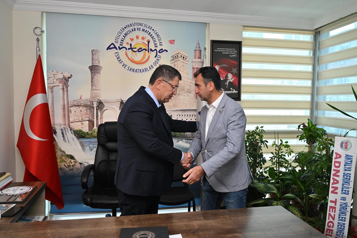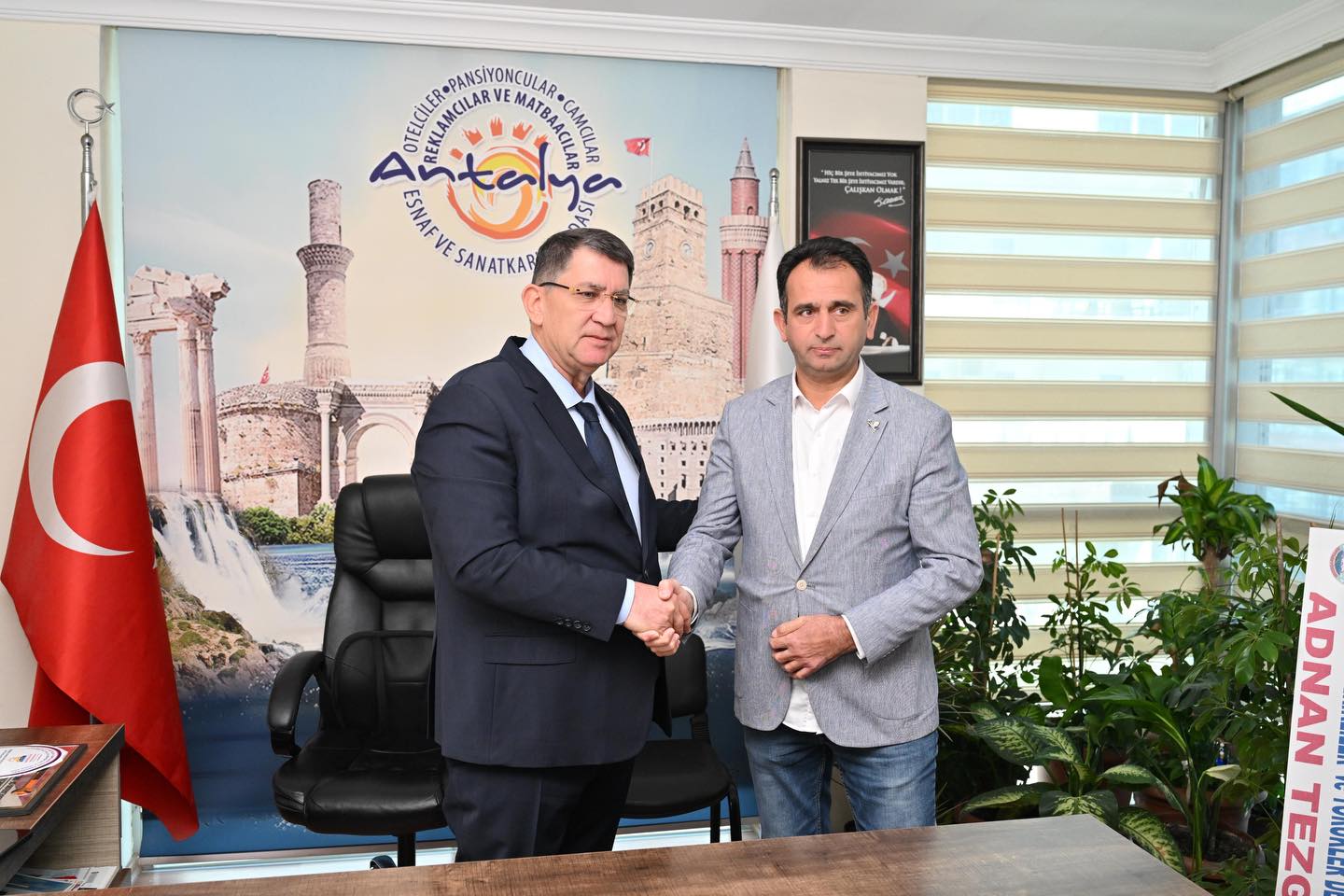 21 Ocak 2026 tarihinde Antalya Otelciler, Pansiyoncular, Camcılar, Reklamcılar ve Matbaacılar Esnaf Odamızın Seçimli Olağan Genel Kurulu gerçekleştirildi. Bu önemli etkinlikte, oda üyelerinin desteğiyle yeniden başkan seçilen Özcan Sucu ve beraberindeki Yönetim ile Denetim Kurulu Üyeleri’ne hayırlı olsun ziyaretinde bulunuldu.