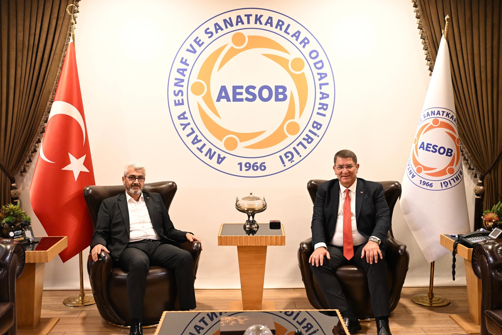 Antalya Esnaf ve Sanatkarlar Odaları Birliği Başkanı Adlıhan Dere, Antalya Ticaret İl Müdürü Halil Özşahan’ı Birlik merkezinde ağırladı.