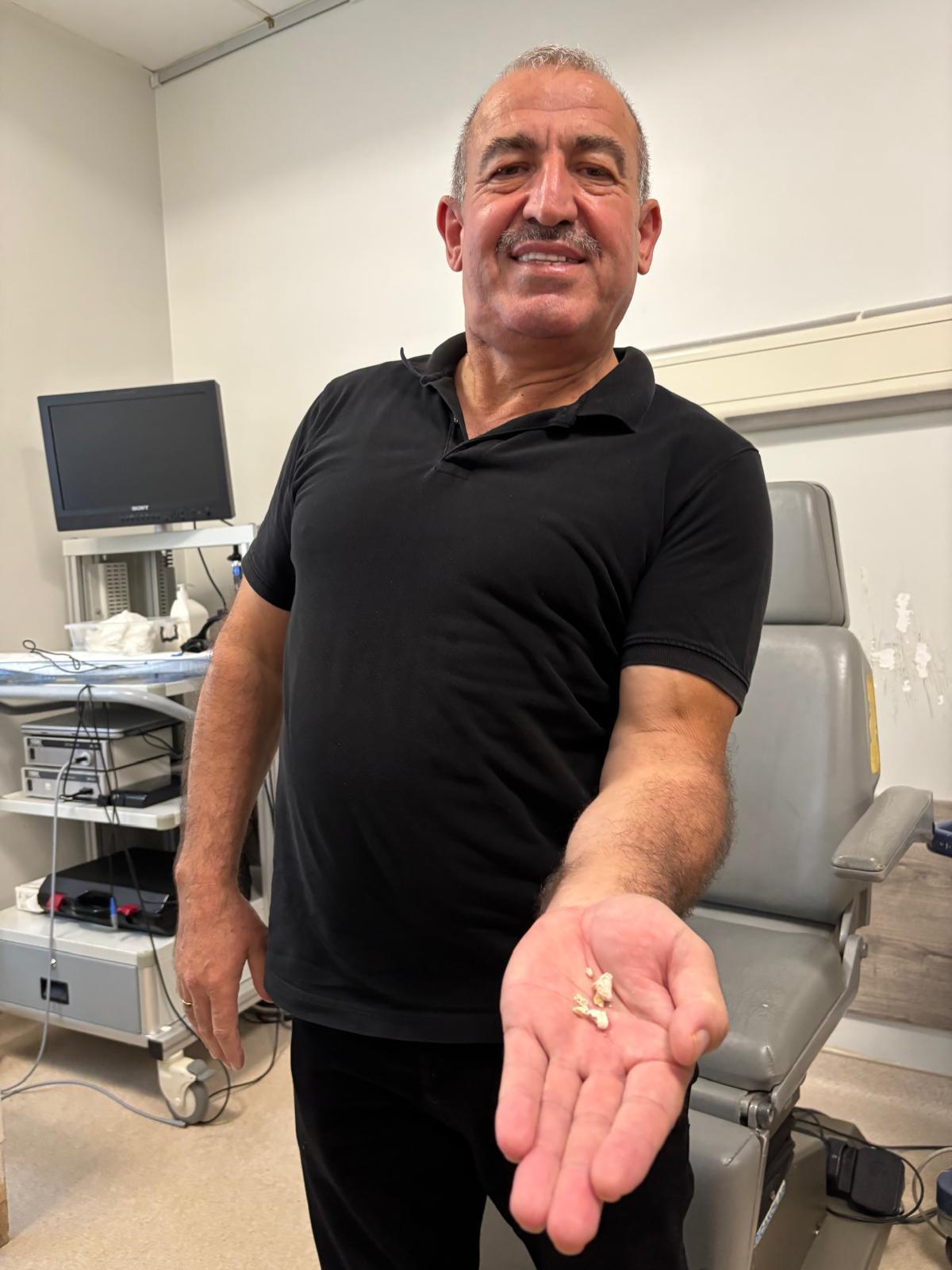 Antalya’da yaşayan Metin Paçacı, boynundaki şişlik nedeniyle başvurduğu hastanede soğuk algınlığı ve bademcik iltihabı teşhisi aldı. Antibiyotik tedavisi sonrası şişliğin inmesiyle birlikte ağız içinde minik taşlar belirmeye başladı. Başlangıçta diş taşı olabileceğini düşünen Paçacı, boynundaki şişliğin yeniden artması ve kasılmaların başlaması üzerine Antalya Eğitim ve Araştırma Hastanesi Kulak Burun Boğaz Kliniği’ne başvurdu. Hekimler tarafından acil ameliyat önerilen Paçacı, 2 saat süren bir operasyonla sağlığına kavuştu.