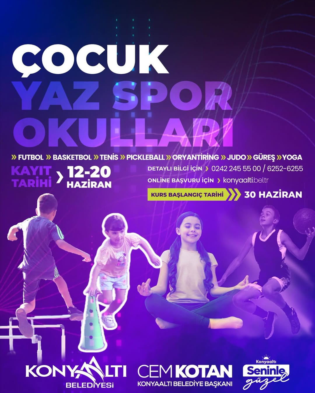 Her yıl olduğu gibi bu yaz da kıymetli çocuklarımız için ücretsiz ‘Yaz Spor Okulları’ etkinliğimiz başlıyor. Futbol, basketbol, tenis, pickleball, oryantiring, judo, güreş ve yoga gibi çeşitli branşlarda sunulacak olan kurslarla, çocuklarımızın sporla tanışmasına destek olabilirsiniz.