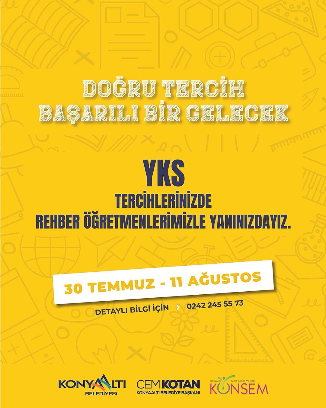 YKS tercih döneminde, doğru seçimlerinizi yapabilmeniz için KONSEM Etüt Merkezi olarak yanınızdayız. Randevunuzu alarak merkezimize gelebilir, rehber öğretmenlerimizle birlikte tercihlerinizi belirleyebilirsiniz. Başarılar dileriz! ☺️